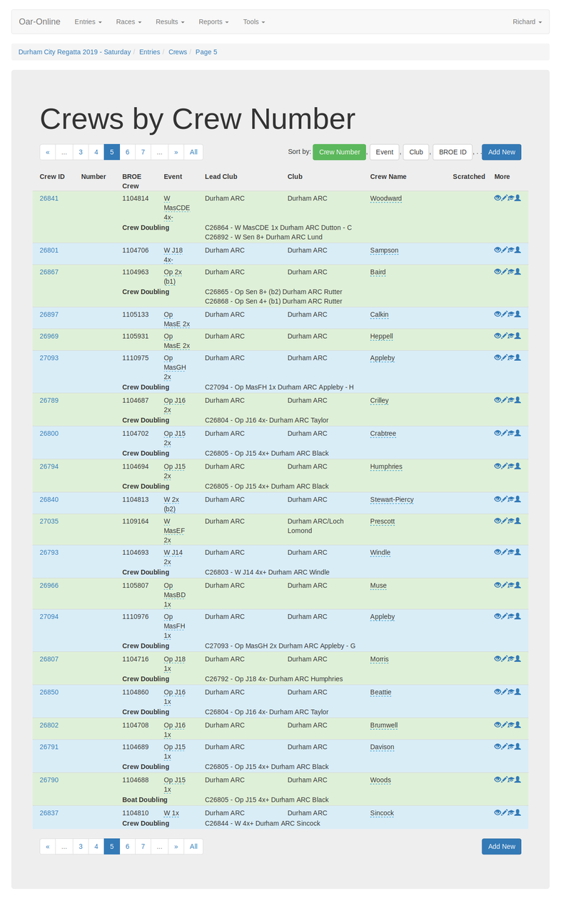 Crew Count - this should match the live crew count as reported by BROE. It maybe that scratchings need to be taking into account in the BROE numbers too. Any discrepancy between the BROE and Oar-Online numbers should be fully understood and ideally eliminated.