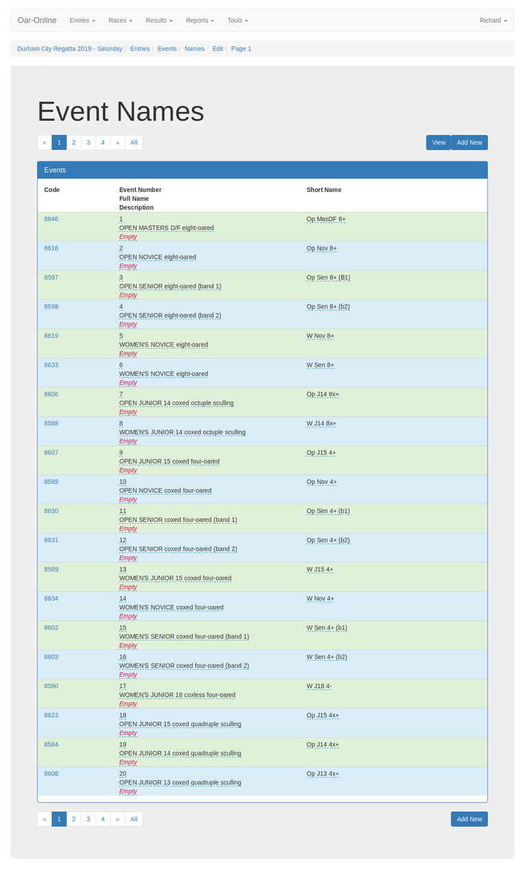 Check that Masters event short codes include the ages of all crews involved in the event. This is very important for umpiring purposes.