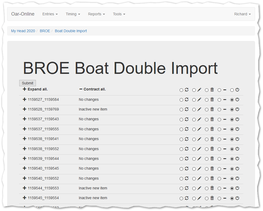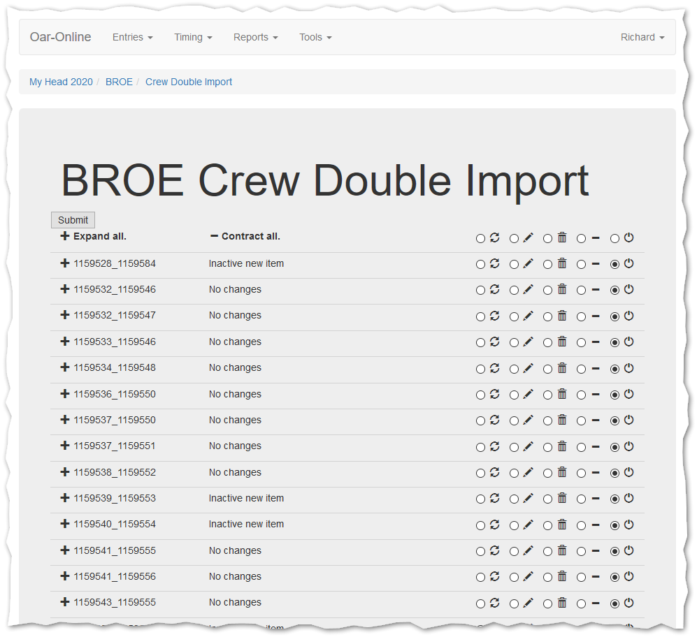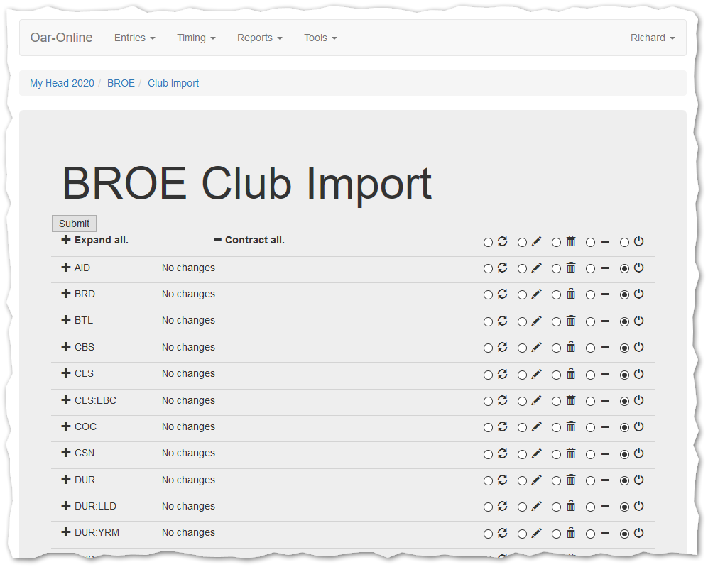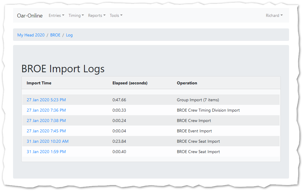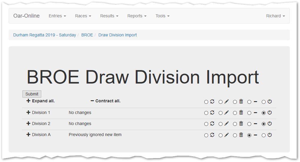 There are however a few areas where the information exported via BROE does not provide sufficient information to accurately reflect the full entry. In particular BROE does not export a true record of the intended masters handicap age category for individual crews. Thus some manual checking/tweaking is required to ensure that the draw represents the entering clubs' wishes. This data review/tidy up typically takes just a few minutes and is easily done.