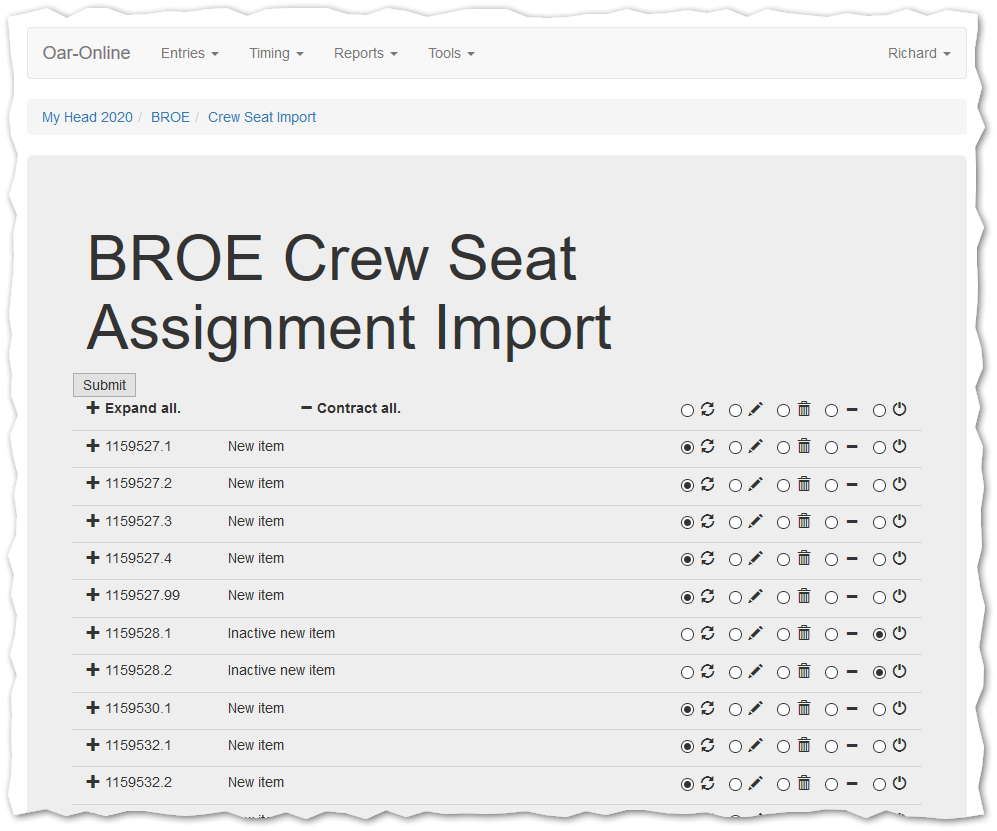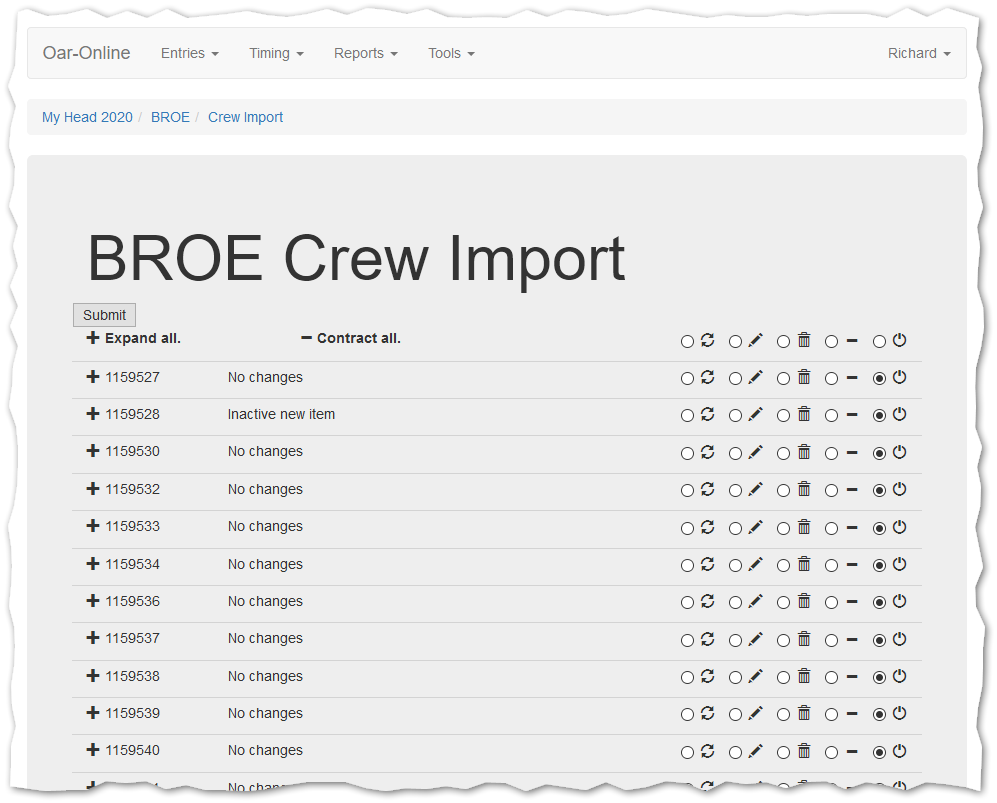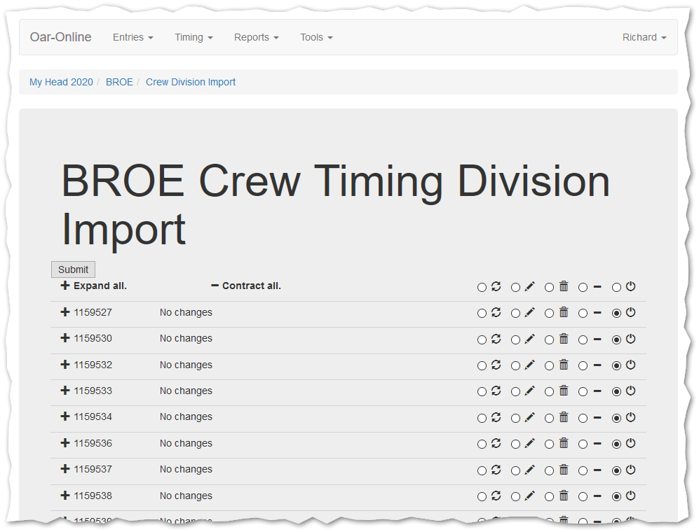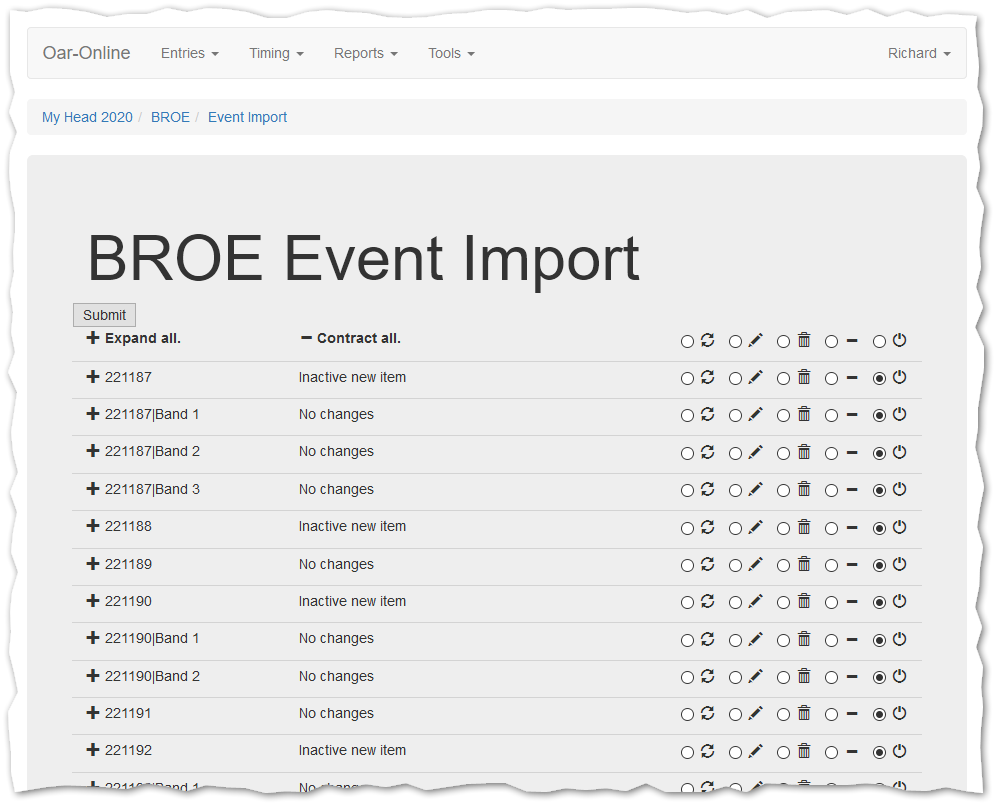 There are however a few areas where the information exported via BROE does not provide sufficient information to accurately reflect the full entry. In particular BROE does not export a true record of the intended masters handicap age category for individual crews. Thus some manual checking/tweaking is required to ensure that the draw represents the entering clubs' wishes. This data review/tidy up typically takes just a few minutes and is easily done.