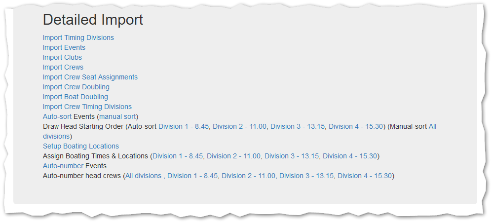 Include Timing Divisions - import the divisions that are used for either head race or time-trial purposes. This option is not available for regatta competitions.