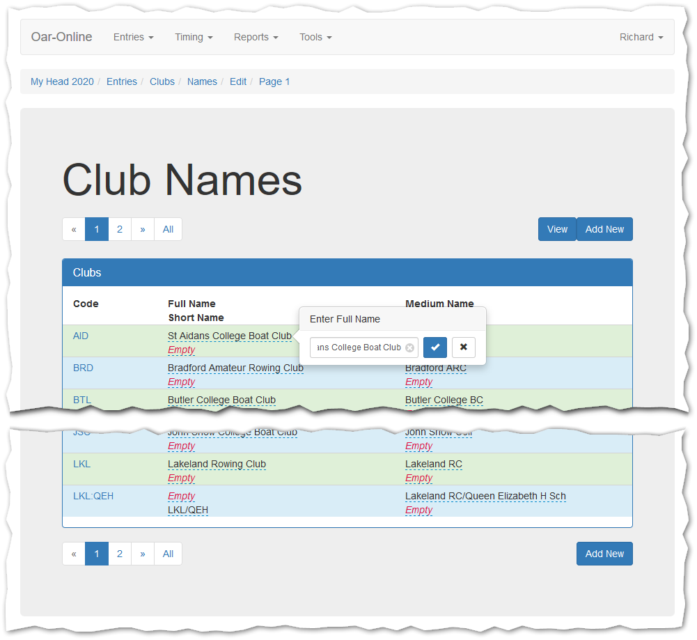 The club names provided by BROE sometimes require a little tweaking to fit with local style guidelines. In the case of composite crews the club names will likely need editing to make them a little shorter so that they fit into the space available in the various reports.