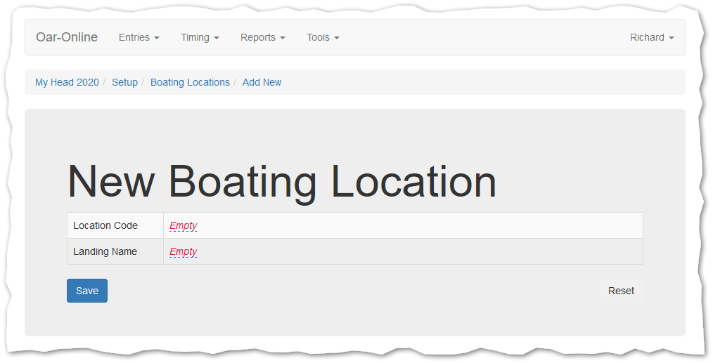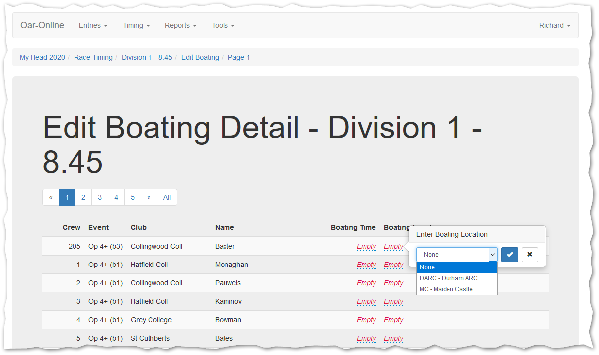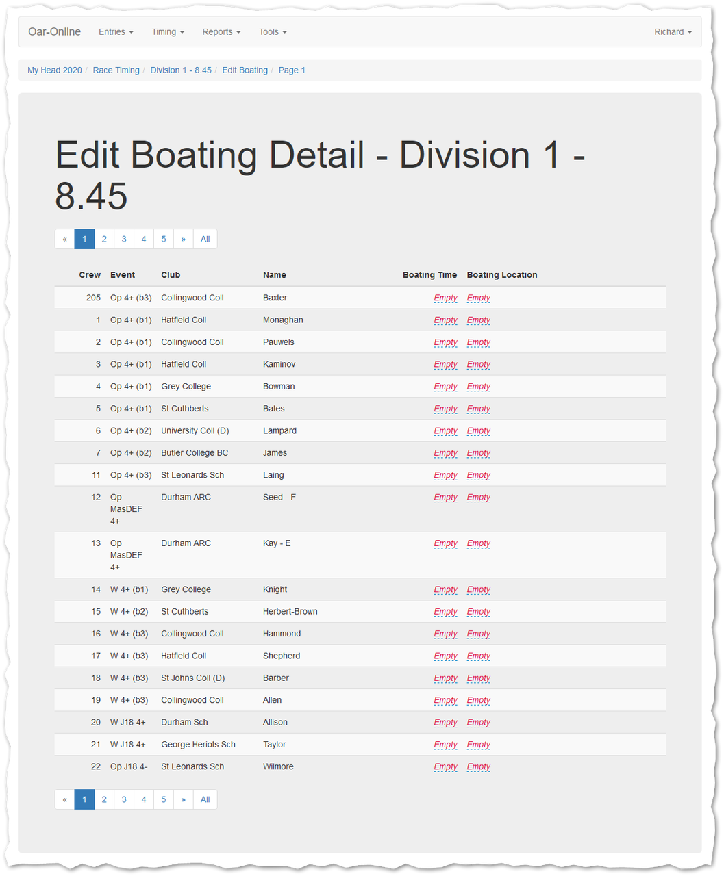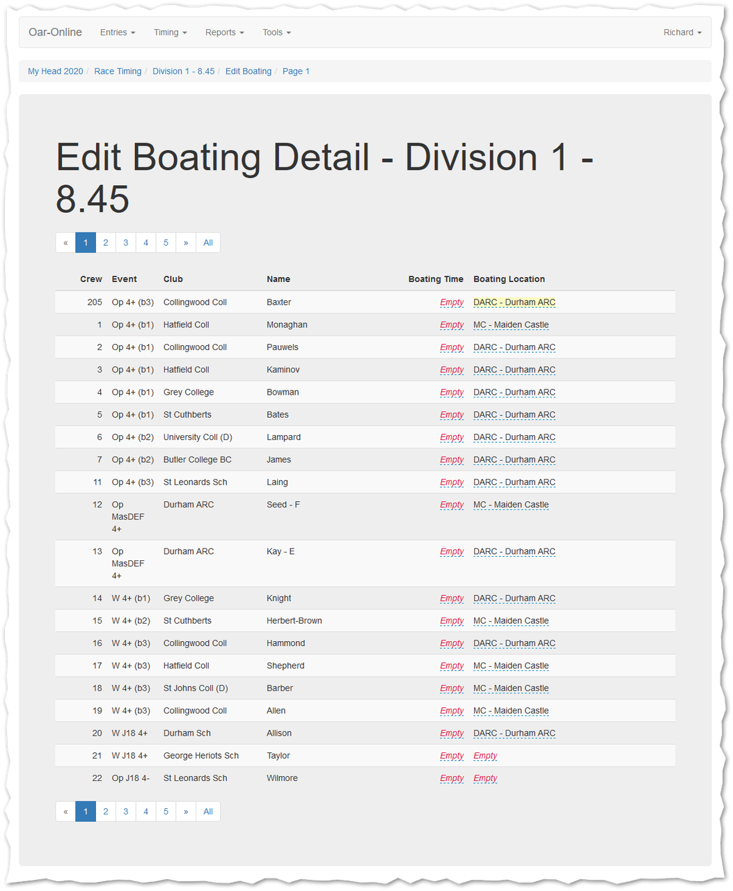 Boating locations and boating times are provided to aide the smooth running of a competition. They are, however, purely optional regarding the timing and generation of results for the competition.
