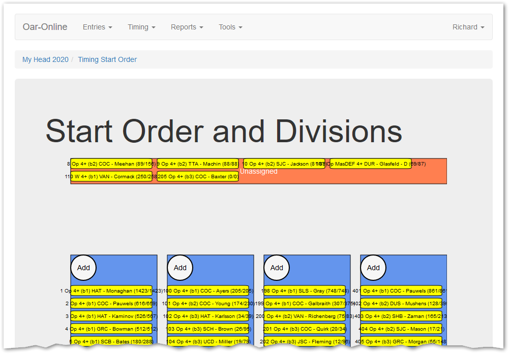 manually drag-and-drop crews around in the start order to tweak things based on Organising Committee knowledge and competitors requests. But note that any manual changes should be done in line with Competition policy and regards for fair and equal racing. If in doubt consult with your Race Committee Chair who is the Competition's authority on the application of the Rules of Racing.