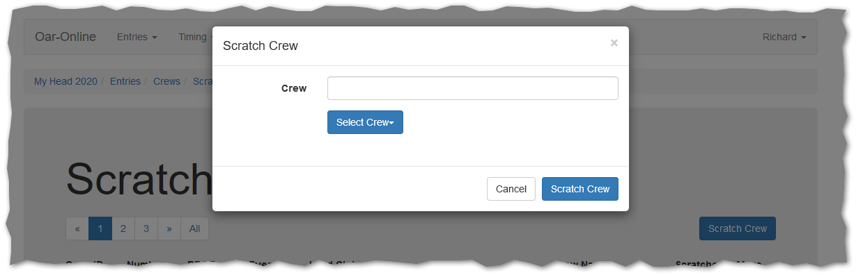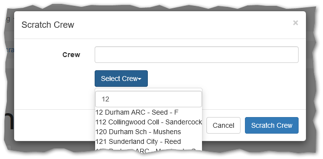 Once a crew has been selected press the Scratch Crew button to record the scratched crew.